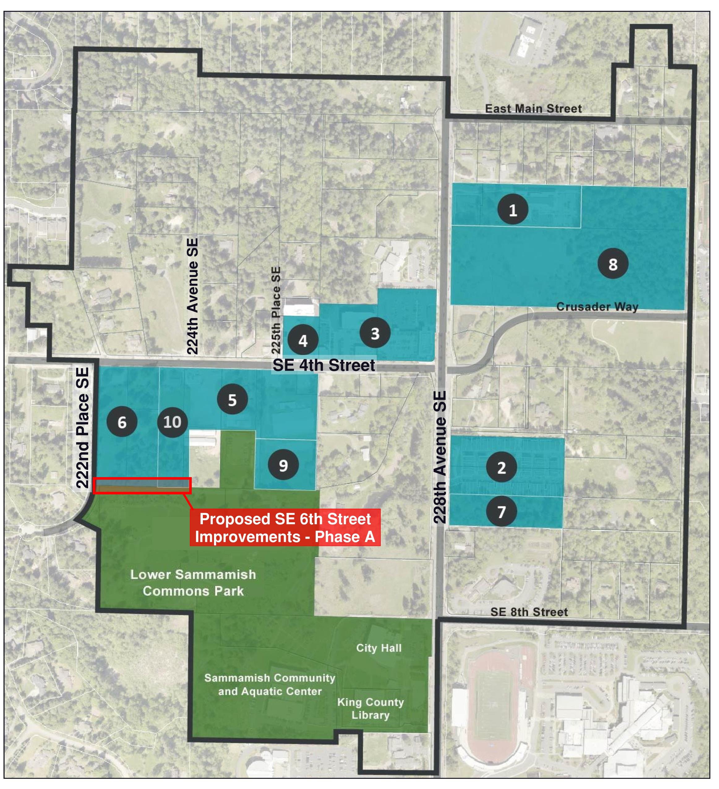 एसई 6वें स्ट्रीट इम्प्रूवमेंट - फेज ए प्रोजेक्ट में एक नई सार्वजनिक सड़क का निर्माण शामिल होगा जो 222वें प्लेस एसई और 224वें एवेन्यू एसई के बीच सम्मामिश कॉमन्स पार्क के उत्तरी छोर के साथ चलेगा। नई सड़क पैदल चलने वालों, साइकिल चालकों और वाहनों दोनों के लिए प्रयोग करने योग्य स्थान प्रदान करेगी।
